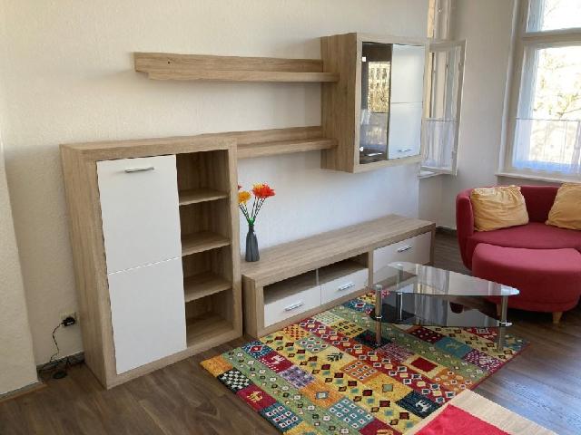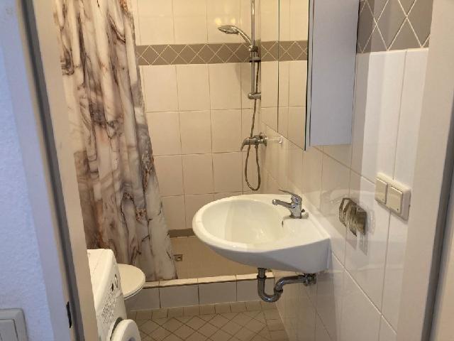 Zwischenmiete bis maximal August 2026. Vollstaendig moebliertes Apartment. Es besteht aus 1,5 Zimmern (Wohnzimmer und Schlafzimmer) einem Flur mit einer kleinen Pantry-Kueche und einem Duschbad. Das Wohnzimmer ist mit Couch, Schraenken und Essplatz eingerichtet, das Schlafzimmer mit Bett, Kleiderschrank und Nachttisch. Das innen liegende Bad verfuegt ?ber eine gro?e Dusche, eine Waschmaschine ist vorhanden. Die Kueche ist relativ klein: Kochmoeglichkeit, Kuehlschrank, Spuele und Geschirrschrank. Geschirr ist vorhanden.